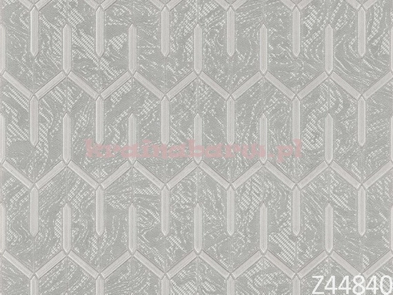 Rolka ma długość 10,05 metra bieżącego, szerokość 70cm, pasowanie wzoru co 64 cm. Zmywalna tapeta z regularnym, geometrycznym, połyskującym metalicznie wzorem. Wzór został naniesiony na szare tło, z wyczuwalną w dotyku strukturą, przypominającą grubą tkaninę, materiał, o zróżnicowanej strukturze, z akcentami drobnej plecionki. Tapeta pięknie połyskuje, wraz ze zmieniającym się kątem padania światła. Najwyższej jakości tapeta, to eleganckie i nowoczesne wykończenie salonu, jadalni, sypialni, gabinetu, dla klientów ceniących jakość, styl i estetykę.