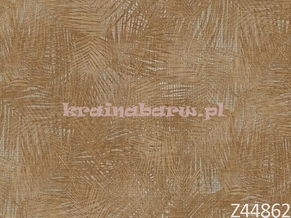 Rolka ma długość 10,05 metra bieżącego, szerokość 70cm, pasowanie wzoru co 70cm. Luksusowa, zmywalna tapeta z modnym wzorem zachodzących na siebie palmowych liści, z wyczuwalną w dotyku strukturą, przypominającą materiał, płótno, w odcieniach złotego brązu. Wzór umieszczony jest na szaro-srebrzysto, złocistym tle, z wyraźnie wyczuwalną w dotyku strukturą, przypominającą wyplataną matę.Tapeta posiada gdzieniegdzie dyskretny mały napis Automobili Lamborghini w kolorze tapety. Wraz ze zmieniającym się kątem padania światła, tapeta pięknie połyskuje, sprawia wrażenie głębi, tworząc efekt trójwymiarowości. Najwyższej jakości tapeta, to proste i efektowne wykończenie wnętrz w modnym stylu miejskiej dżungli- jungle city, także wspaniale sprawdzi się we wnętrzach w stylu industrialnym, minimalistycznym, nowoczesnym.