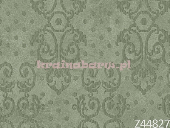 Rolka ma długość 10,05 metra bieżącego, szerokość 70 cm, pasowanie wzoru co 54 cm. Zmywalna tapeta, z nowoczesnymi dużymi ornamentami pięknie połyskującymi, w odcieniu stonowanej zieleni. Wzór umieszczony jest na jasnym tle, z wyczuwalną w dotyku strukturą, przypominającą betonowy tynk, ścianę z widocznymi przetarciami, w odcieniach jasnego beżu, kremu. Struktura tapety, w zależności od kąta padania światła pięknie mieni się satynowym, delikatnym blaskiem. Tapeta posiada również gdzieniegdzie dyskretny mały napis: Automobili Lamborghini w kolorze tapety. Stylowa, designerska tapeta, to luksusowe uzupełnienie nowoczesnych wnętrz: salonów, sypialni, jadalni, gabinetów i wszelkich prestiżowych miejsc.