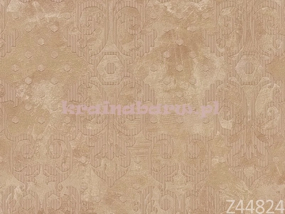 Rolka ma długość 10,05 metra bieżącego, szerokość 70 cm, pasowanie wzoru co 54 cm. Zmywalna tapeta, z nowoczesnymi dużymi ornamentami pięknie połyskującymi, w odcieniu złocistego beżu. Wzór umieszczony jest na jasnym tle, z wyczuwalną w dotyku strukturą, przypominającą betonowy tynk, ścianę z widocznymi przetarciami, w odcieniach jasnego beżu, kremu. Struktura tapety, w zależności od kąta padania światła pięknie mieni się satynowym, delikatnym blaskiem. Tapeta posiada również gdzieniegdzie dyskretny mały napis: Automobili Lamborghini w kolorze tapety. Stylowa, designerska tapeta, to luksusowe uzupełnienie nowoczesnych wnętrz: salonów, sypialni, jadalni, gabinetów i wszelkich prestiżowych miejsc.