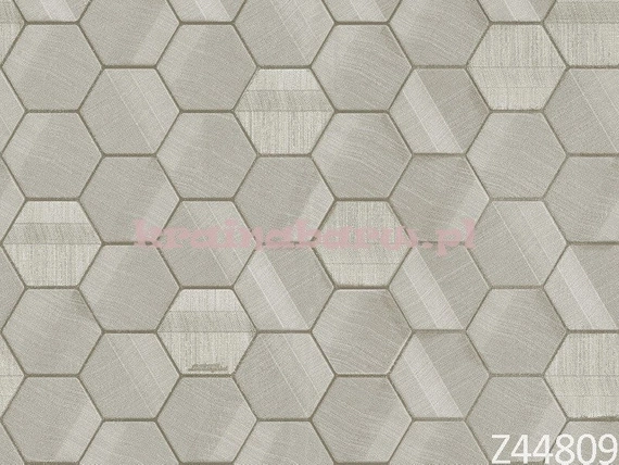 Rolka ma długość 10,05 metra bieżącego, szerokość 70cm, pasowanie wzoru co 60 cm. Zmywalna tapeta z regularnymi, geometrycznymi heksagonami w odcieniu srebrzystego jasno szarego koloru. Wzór ma zróżnicowaną, wyczuwalną w dotyku strukturę, która w zależności od kąta padania światła mieni się satynowym, szlachetnym blaskiem, posiada również gdzieniegdzie dyskretny mały napis: Automobili Lamborghini w kolorze tapety. Najwyższej jakości tapeta, z geometryczną prostotą wpisuje się do współczesnych, nowoczesnych wnętrz.