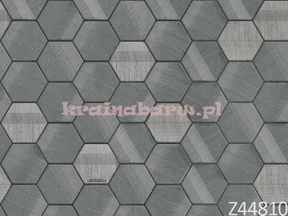 Rolka ma długość 10,05 metra bieżącego, szerokość 70cm, pasowanie wzoru co 60 cm. Zmywalna tapeta z regularnymi, geometrycznymi heksagonami w odcieniu koloru srebrzysto szarego. Wzór ma zróżnicowaną, wyczuwalną w dotyku strukturę, która w zależności od kąta padania światła mieni się satynowym, szlachetnym blaskiem, posiada również gdzieniegdzie dyskretny mały napis: Automobili Lamborghini w kolorze tapety. Najwyższej jakości tapeta, z geometryczną prostotą wpisuje się do współczesnych, nowoczesnych wnętrz.