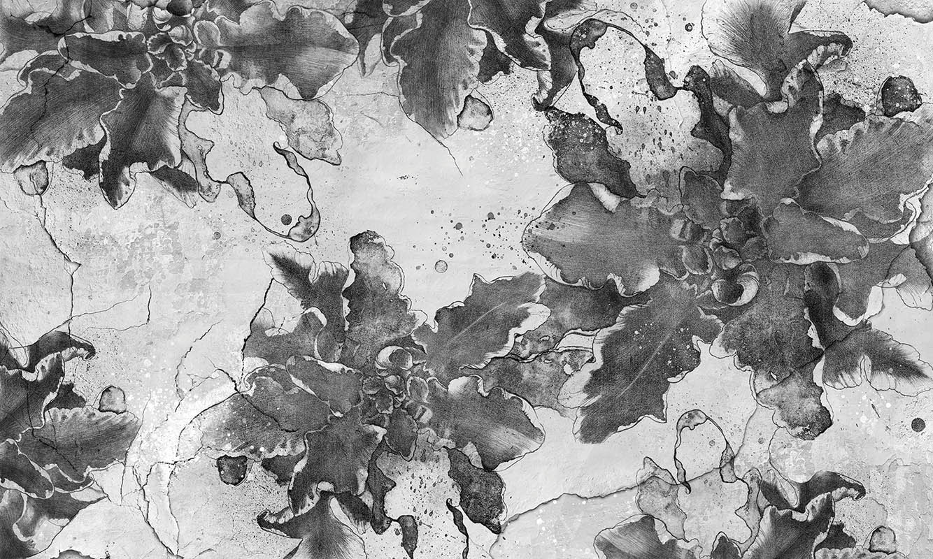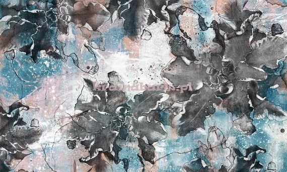 Malownicze kwiaty w odcieniach koloru szarego, czarnego, na kolorowym tle, z przenikającymi się kolorami odcieni niebieskiego, kremowego, delikatnego różowego tworzą magiczny klimat. Fototapeta z nowoczesną grafiką, z wyczuwalną w dotyku strukturą, lekkim satynowym blaskiem, doskonale wpisuje się w modne trendy w aranżacji wnętrz, tworząc w nim niezwykłą atmosferę.