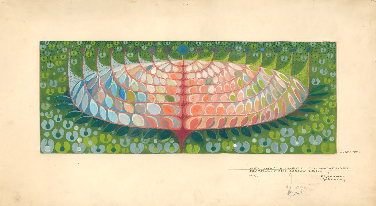 Oryginalny projekt malowidła ściennego autorstwa Franciszka Michałka, który powstał w latach 60. i 70. jako koncepcja dekoracji ściennej w sanatoriach w Ciechocinku oraz wnętrzach publicznych we Włocławku i okolicach.