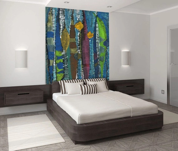 Tapety z kolekcji Czarodziejski Las potrafią zdominować przestrzeń, dlatego polecamy je szczególnie do hoteli czy dużych otwartych biur. Natomiast odpowiednio wyeksponowane w mniejszych wnętrzach przyciągną uwagę, stając się osią dla niebanalnych aranżacji. Choć naturalnie kojarzą się ze stylem boho, harmonijnie wpisują się w nurt nostalgii za czasami PRL-u, trendy futurystyczne a nawet glamour.