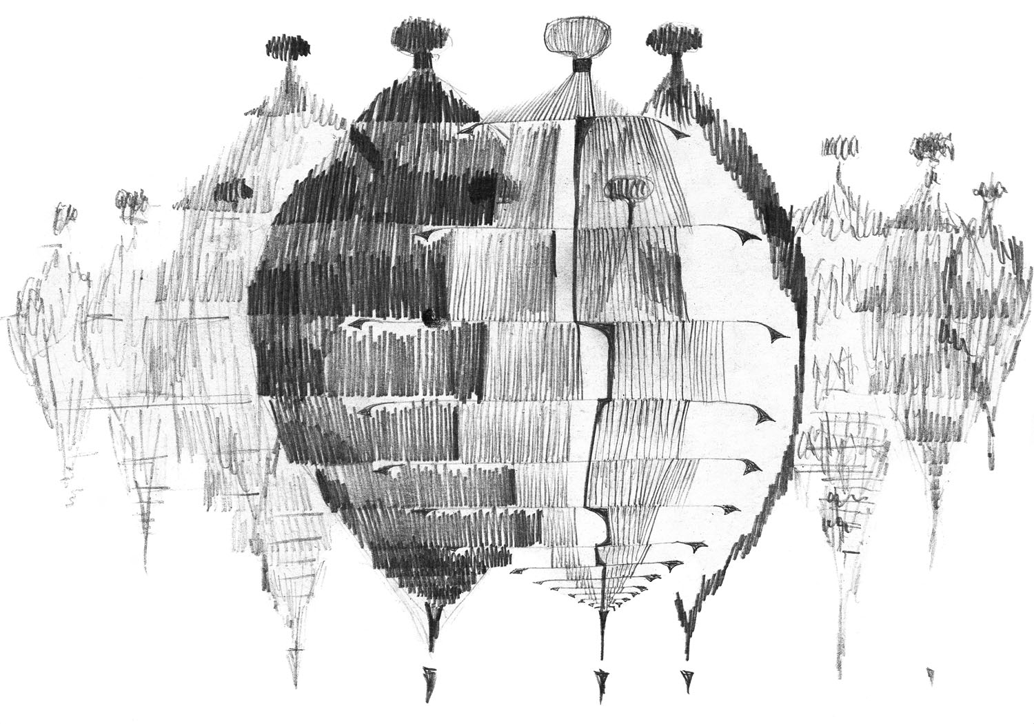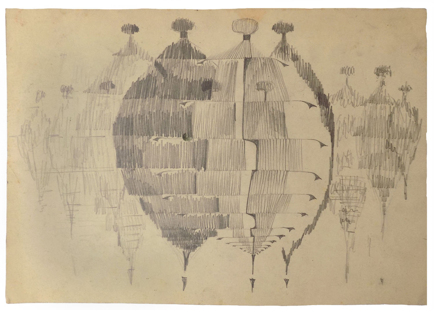 Rysunek Franciszka Michałka z lat 60. Najprawdopodobniej powstał jako szkic do większej kompozycji, stworzonej w technice własnej, z której artysta często korzystał w tamtych latach.