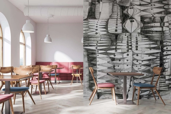 Na podstawie rysunków technicznych pomieszczenia przygotowujemy propozycje graficzne zaprojektowane dla dedykowanego wnętrza.