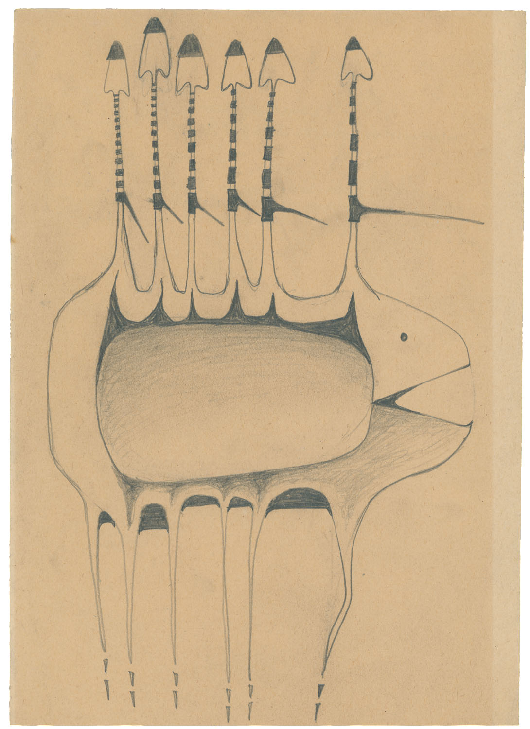 Rysunek Franciszka Michałka z lat 60. Najprawdopodobniej powstał jako szkic do większej kompozycji, stworzonej w technice własnej, z której artysta często korzystał w tamtych latach.