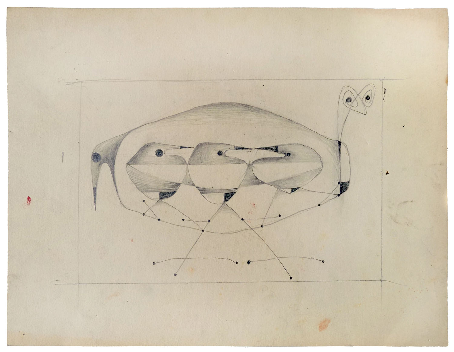 Rysunek Franciszka Michałka z lat 60. Najprawdopodobniej powstał jako szkic do większej kompozycji, stworzonej w technice własnej, z której artysta często korzystał w tamtych latach.