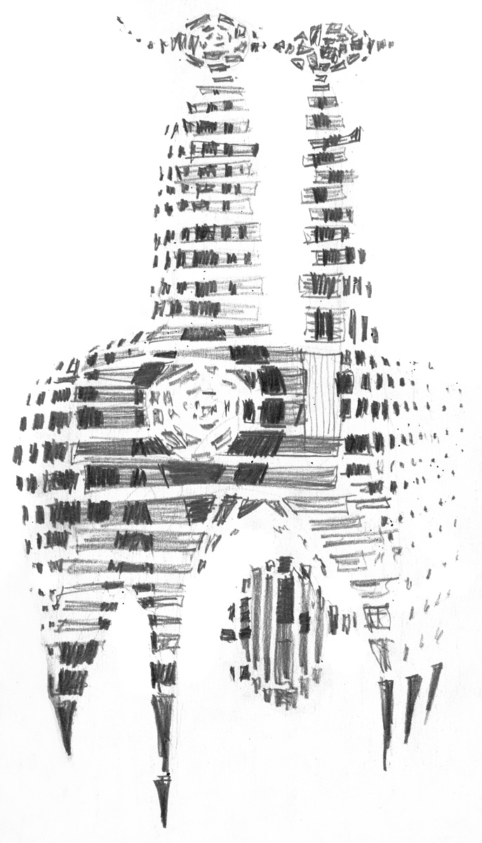 Rysunek Franciszka Michałka z lat 60. Najprawdopodobniej powstał jako szkic do większej kompozycji, stworzonej w technice własnej, z której artysta często korzystał w tamtych latach.
