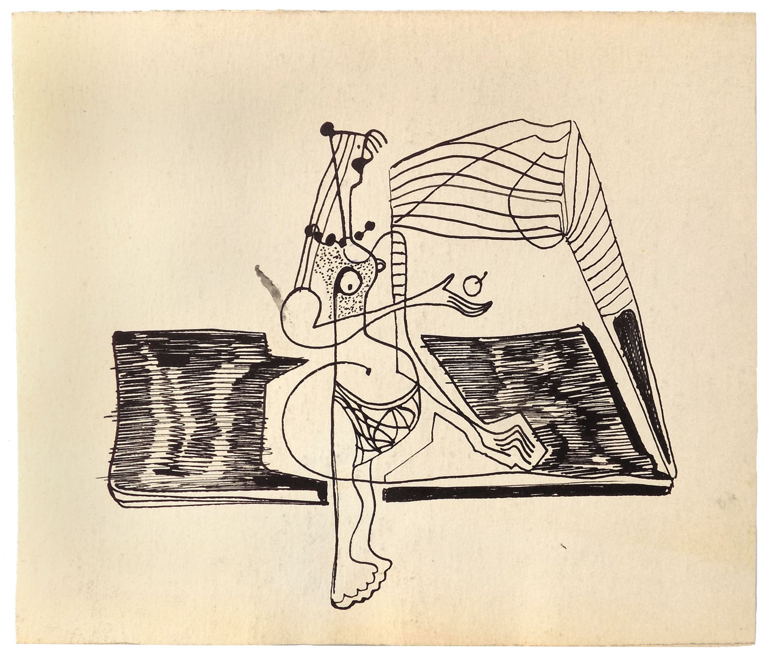 Rysunek Franciszka Michałka z lat 60. Najprawdopodobniej powstał jako szkic do większej kompozycji, stworzonej w technice własnej, z której artysta często korzystał w tamtych latach.