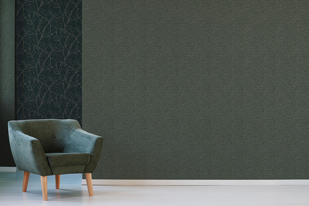 Aranżacja przedstawia tapetę 108616 Heritage Texture Dark Green Prestige Superfresco Graham & Brown