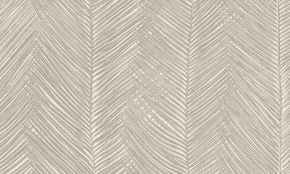 Przyjemna w dotyku miękka, tekstylna tapeta na flizelinie, o szerokości 70 cm, długości 8,50 m, przesunięcie wzoru 64/ 32 cm. Wzór przedstawia drobne liście palmy na jasnym tle.Tapeta utrzymana jest w odcieniach szarawego beżu. Dostępny jest w 4 różnych wariantach kolorystycznych.
