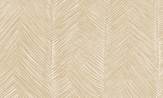 Przyjemna w dotyku miękka, tekstylna tapeta na flizelinie, o szerokości 70 cm, długości 8,50 m, przesunięcie wzoru 64/ 32 cm. Wzór przedstawia drobne liście palmy na jasnym tle.Tapeta utrzymana jest w odcieniach złotego z delikatnym, srebrzystym połyskiem. Dostępny jest w 4 różnych wariantach kolorystycznych.