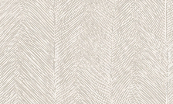 Przyjemna w dotyku miękka, tekstylna tapeta na flizelinie, o szerokości 70 cm, długości 8,50 m, przesunięcie wzoru 64/ 32 cm. Wzór przedstawia drobne liście palmy na jasnym tle.Tapeta utrzymana jest w odcieniach bieli i jasnego beżu. Dostępny jest w 4 różnych wariantach kolorystycznych.
