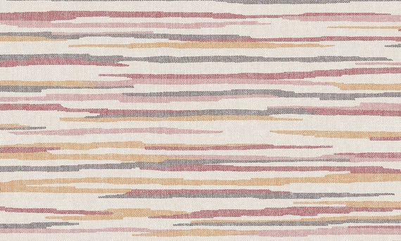 Przyjemna w dotyku miękka, tekstylna tapeta na flizelinie, o szerokości 70 cm, długości 8,50 m, przesunięcie wzoru 64/ 32 cm. Na jasnym, szarym tle możemy zobaczyć poziome niereguralne pasy w odcieniach czerwieni, różu, pomarańczowego i szarego. Swoim ułożeniem mogą one przypominać widziany z oddali horyzont. Tapeta posiada wyczuwalną, nieco chropowatą teksturę. Jest dostępna w trzech wariantach kolorystycznych.
