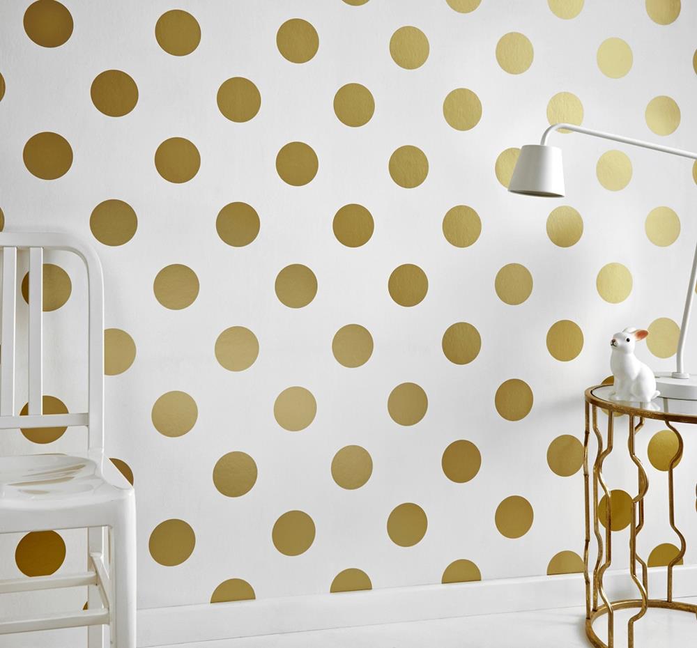 Aranżacja przedstawia tapetę z kolekcji Kids@Home Individual 100105 Gold Dotty