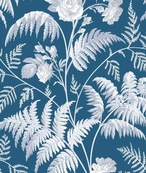Tapeta 115/10031 Kwiaty róży liście paproci biało niebieskie
