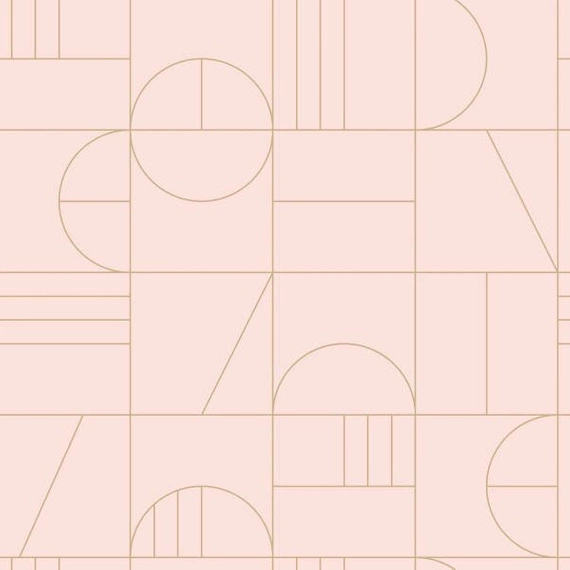 Modna tapeta 139207 geometryczna w stylu Art Deco blady róż i złoto