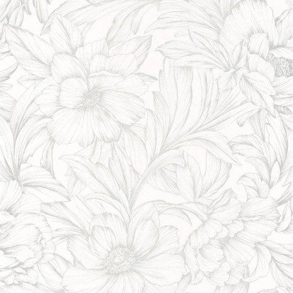 Tapeta na flizelinie, rolka ma szerokość 53cm, długość 10,05 metra, pasowanie wzoru co 64cm. Subtelna tapeta ze srebrnymi, połyskującymi kwiatami i liśćmi tworzy się jak grawerunek, odwracając siłę światła: światło staje się ciemne, a ciemność staje się jasna. Taki efekt dodaje tapecie znacznego charakteru i elegancji.