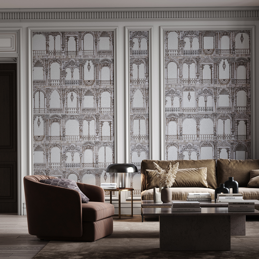 Aranżacja przedstawia fototapetę WonderWall Studio 35 0118 01 Antica 1