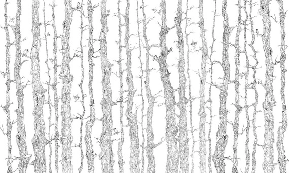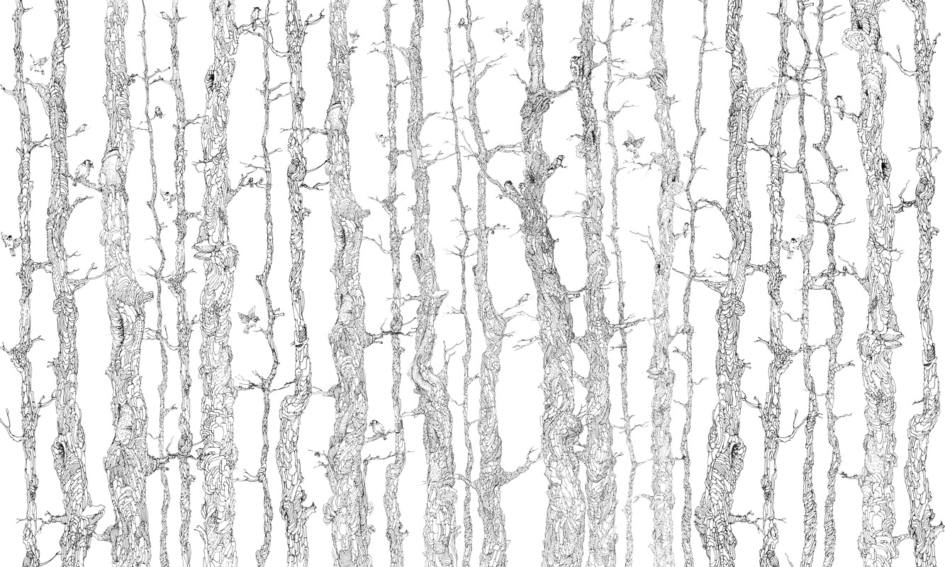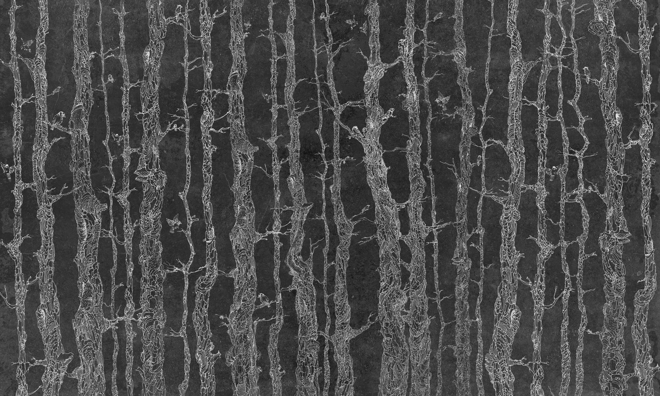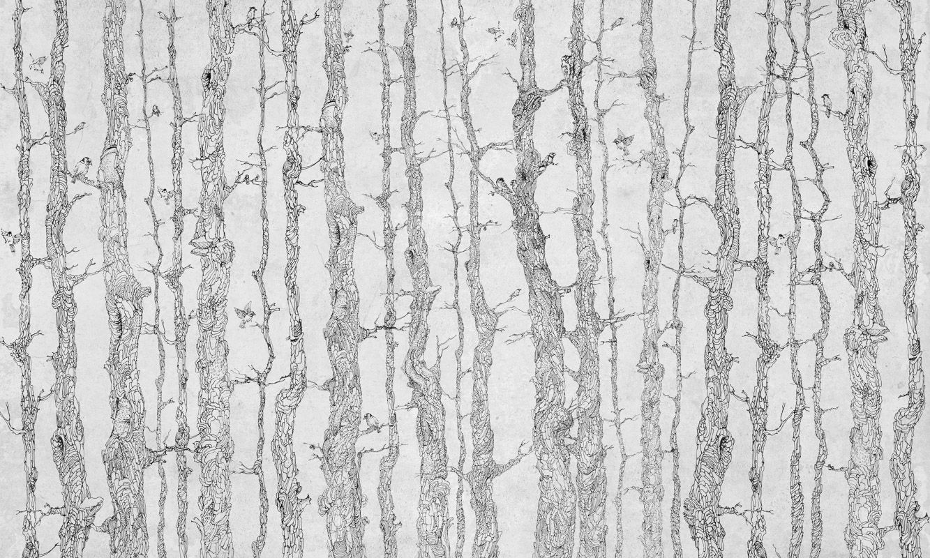 Fototapeta od Wonderwall Studio z nowoczesną grafiką, z wyczuwalną fakturą, w dotyku lekko chropowata, z prostym wzorem drzew. Oryginalny autorski projekt, wydrukowany na wysokiej jakości materiałach, doskonale sprawdzi się w salonach, sypialniach, gabinetach, tworząc w nich niezwykłą, zapadającą w pamięć atmosferę.