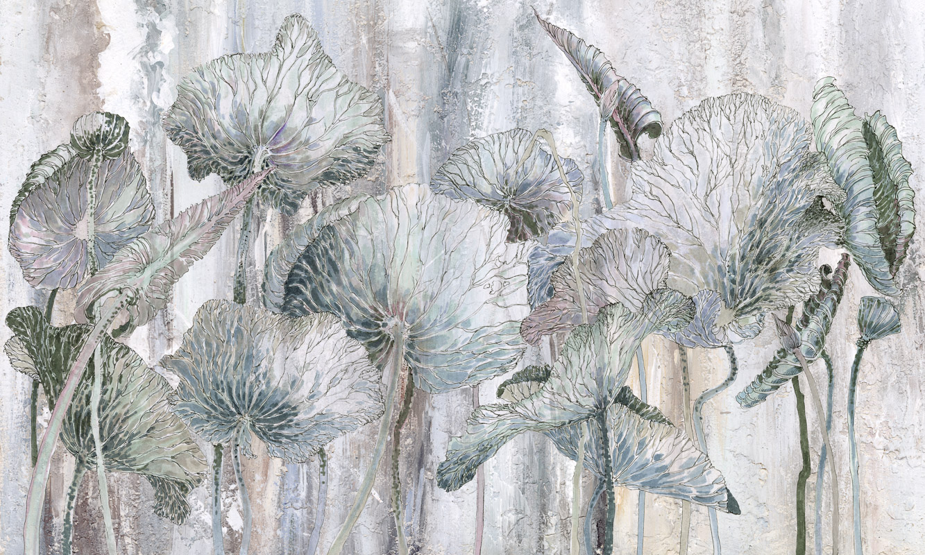 Fototapeta z nowoczesną grafiką, z wyczuwalną fakturą, w dotyku lekko chropowata, z wzorem dużych liści Lotosu, w przenikających się wzajemnie kolorach. Struktura tapety wraz z kolorami tworzy zachwycający efekt. Oryginalny autorski projekt, wydrukowany na wysokiej jakości materiałach, będzie wspaniałą ozdobą każdego wnętrza, tworząc w nim pełen harmonii klimat, nikogo nie pozostawi obojętnym....