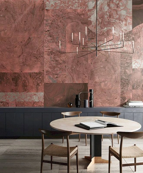 Artystyczny mural belgijskiej firmy Khroma został wykonany na tapecie winylowej na podkładzie z flizeliny.