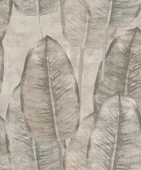 Tapeta Tahiti TA 25080 duże tropikalne liscie szaro beżowa