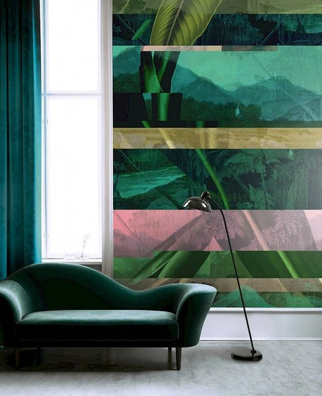 Artystyczny mural belgijskiej firmy Khroma został wykonany na tapecie winylowej na podkładzie z flizeliny.