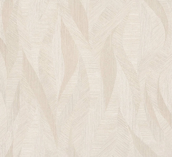 Tapeta z abstrakcyjnymi liśćmi wygląda jakby to wiatr utworzył wzór na pustynnym piasku. Nada wnętrzu unikalnego i ciekawego wyglądu.