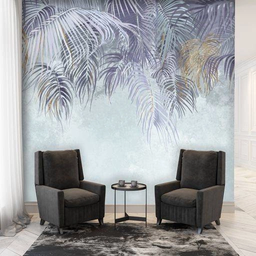 Fototapeta 3D do Salonu Liście Beton Fiolet Błękit