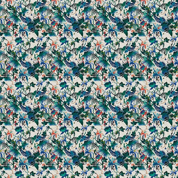 Kolekcja Roberto Cavalli no. 8. Wzór RC 19107. Wzór przedstawia tropikalne liście i kwiaty