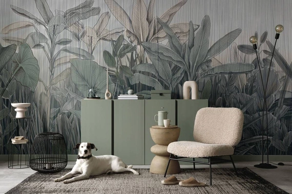 Tapeta z roślinnym motywem to jeden z najgorętszych trendów aranżacyjnych. Soczyste liście bananowców i innych egzotycznych roślin wprowadzają do pomieszczenia element urban jungle – stylu, który na dobre zagościł się w modnych mieszkaniach i biurach. Tapetując ścianę roślinnym wzorem, poczujesz się jak podczas wakacji w tropikach - w pełni zrelaksowany/-a. Wzór wygląda jak naszkicowany ręką artysty, a pionowe kreski potęgują to wrażenie. Jest elegancki i nacechowany artyzmem. Patrząc na miejską dżunglę, nie pozostaje nic innego jak odprężyć się i odpocząć od natłoku myśli.