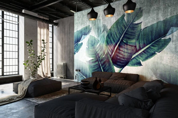 Czy wiesz, że wielkie, tropikalne liście to jeden z najgorętszych trendów w dekorowaniu wnętrz? Wcale nie musisz mieć smykałki do uprawy roślin, by ozdobić mieszkanie w klimacie tropikalnym. Tapeta Huge leaves to wielkoformatowe przedstawienie liści bananowca – motyw z pewnością będzie dominującym w pomieszczeniu. Szare, postarzane tło kojarzące się z surowym betonem tworzy z liśćmi interesujący kontrast. Tapeta wprowadzi do nowoczesnego wnętrza dawkę modnej egzotyki w odsłonie XXL. Z łatwością znajdziesz tekstylia i dodatki w pasującym do niej stylu.