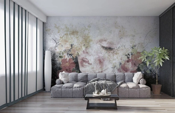 Romantyczna, elegancka, tajemnicza – tapecie Mysterious woman nie można odmówić uroku. Kobieta z portretu zachwyca urodą porcelanowej lalki. Jej piękno podkreśla wieniec czerwonych róż. Czarne kreski można interpretować jako boa. Tapeta wygląda niczym secesyjny obraz namalowany akwarelą na papeterii. Jego celowe postarzenie tworzy modny efekt vintage. Stanowi świetną propozycję do wnętrz, które mają mieć wyraźnie kobiecy charakter, na przykład do sypialni, toaletki, garderoby czy gabinetu beauty.