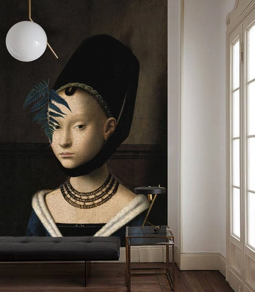 Majestatyczny mural przedstawiający renesansowy portret młodej damy o tajemniczym spojrzeniu. Inspirowany malarstwem klasycznym obraz, wzbogacony o drobne elementy ozdobne, które dodatkowo podkreślają jego wyjątkowy styl w zestawieniu z ciemną kolorystyką prezentuje się wyjątkowo dostojnie. Ten absolutnie niezwykły styl, doda wyjątkowego szyku i elegancji w każdym wnętrzu.