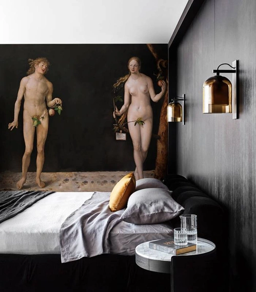 Mural z kolekcji artystycznych tapet Art Matters inspirowanych klasycznym malarstwem. Odważny wzór przedstawiający biblijnych Ewę i Adama, stojących przy drzewie poznania. Arcyciekawy obraz, obok, którego trudno przejść obojętnie. Pasuje zarówno do klasycznych jak i nowoczesnych aranżacji wnętrz.