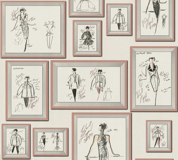 Opis tapety 37846-4 K/SKETCH z kolekcji Karl Lagerfeld. Wzór przedstawia ramki ze szkicami Karla Lagerfelda :