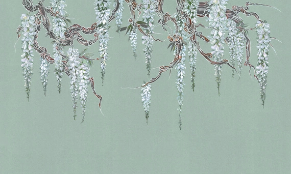 Malownicze zwisające piękne kwiaty wisterii, w modnych kolorach tworzą romantyczny i nastrojowy klimat. Fototapeta doskonale wpisuje się w modne roślinne aranżacje wnętrz. Oryginalny autorski projekt wydrukowany na wysokiej jakości materiałach, będzie wspaniałą ozdobą każdego pomieszczenia, tworząc w nim niepowtarzalny, klimat...