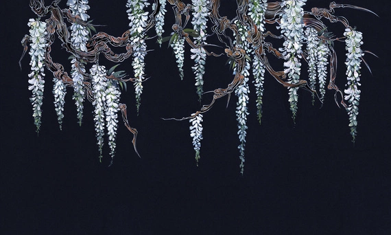 Fototapeta zwisajace kwiaty Elvie na ciemnym tle