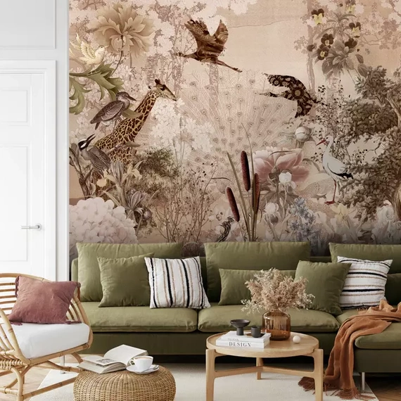 Fototapeta Secret Garden od polskiego producenta firmy Wallart, to tajemniczy ogród, który skrywa w sobie wiele tajemnic i niespodzianek. Dzięki zastosowanej technice kolażu, wzór z piękna roslinnoscia i zwierzątkami jest bogaty w detale. Mnogość elementów została stonowana ujednoliceniem kolorystyki do ciepłych beży i pudrowego różu. Secret Garden to bez wątpienia wzór odważny, który idealnie połączy się z drewnianymi elementami i jasnymi, stonowanymi meblami.