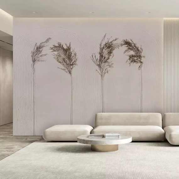 Aticci -oryginalna tapeta firmy Wallart, z wzorem namalowanym przez Annę Kowalczyk,to swego rodzaju nowa odsłona bestsellerowego wzoru Campo di Avena. Delikatna kolorystyka ozdobiona źdźbłami traw wpisanymi w strukturalne łuki, to kwintesencja ponadczasowej elegancji. Podobnie jak Campo di Avena, również Anticci powstało jako obraz stworzony z prawdziwych roślin wtopionych w masę strukturalną uformowaną w łuki. Antycznego sznytu dodaje efekt delikatnego spękania dodany do tapety.