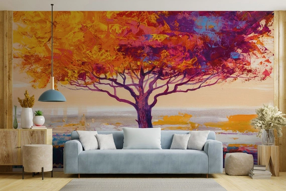 Pełen kolorów, intensywny i pobudzający do kreatywności – wzór Famous tree jest niezwykle ekspresywny, dlatego z pewnością stanie się główną ozdobą wnętrza. Ze względu na ożywiający charakter dopełni nowoczesne wnętrze, któremu brakuje barw. Kolorowe drzewo zdaje się być pełne optymizmu – patrząc na nie każdego dnia, można pozytywnie nastroić się do działania. Tapeta jest idealna do pokoju dziennego, biura albo poczekalni. Wielkoformatowy motyw stworzy w pomieszczeniu efekt głębi, wizualnie je powiększając.