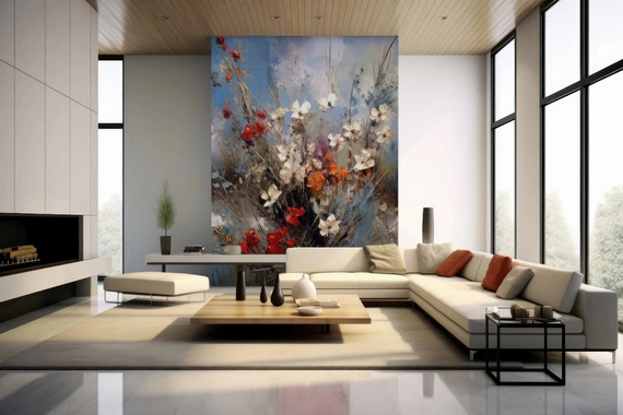 To malarskie arcydzieło ukazuje piękny bukiet polnych kwiatów, które tańczą na tle nieba wiosennego. Technika olejna nadaje im delikatny, ruchliwy charakter, tworząc subtelny efekt rozmycia. Ekspresjonistyczne wibracje płótna przynoszą dynamikę i życie temu scenariuszowi natury w pełnym rozkwicie.