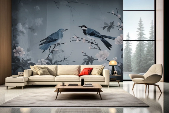 Ten malarski mural prezentuje białe kwiaty, które otaczają centralnie umieszczoną parę ptaków, siedzących na gałęzi i spoglądających sobie w oczy. W tle subtelnie ukazane są kontury drzew, jakby otulone mgłą, co dodaje kompozycji tajemniczego uroku. Dzieło emanuje romantyczną aurą, oddając piękno harmonii między przyrodą a miłością.