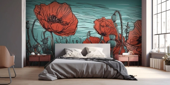 W tym malowniczym muralu, zanurzamy się w urokliwą łąkę, gdzie po horyzont rozciągają się pola maków. Obraz ożywa dzięki technice akwareli, która nadaje mu delikatność i przejrzystość. Pastelowe odcienie spokojnych barw dodają kompozycji subtelnego uroku i harmonii natury. To jakbyśmy mieli okazję zanurzyć się w malowniczy pejzaż, gdzie delikatność i spokój towarzyszą nam na każdym kroku.
