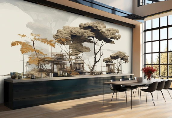 malarskie, artystyczne, sztuka, grafika, design, włoskie, oryginalne, luksusowe, ekskluzywne, drzewa, las, beton, do sypialni