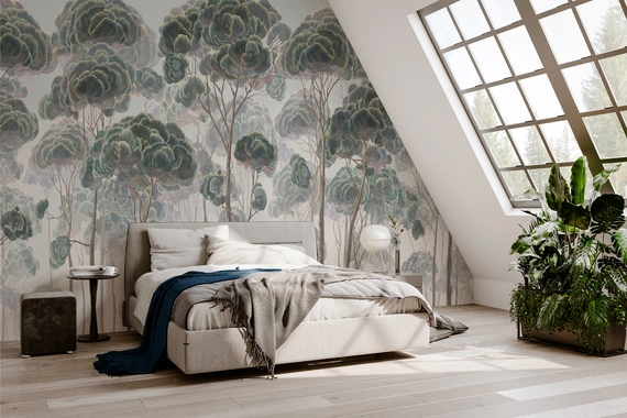 malarskie, artystyczne, sztuka, grafika, design, włoskie, oryginalne, luksusowe, ekskluzywne, drzewa, las, beton, do sypialni