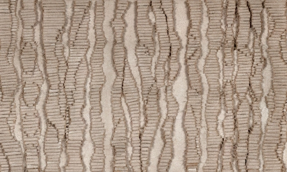 Tapeta „DNA” to wzór inspirowany pierwotną geometrią natury, nawiązujący formą do spirali życia, korzeni oraz struktur organicznych. Delikatnie wypukłe pasy – przypominające skręcone włókna lub warstwowe sploty materiału – układają się w pionowe linie o nieregularnym, dynamicznym rytmie. Ich struktura tworzy subtelny relief, który buduje wrażenie ruchu i głębi. Tekstura wzoru przywołuje skojarzenia z ręcznie tkanym płótnem lub korą drzewną, jednocześnie pozostając minimalistyczna i nowoczesna. To doskonałe połączenie sztuki rzemiosła z nowoczesnym designem.